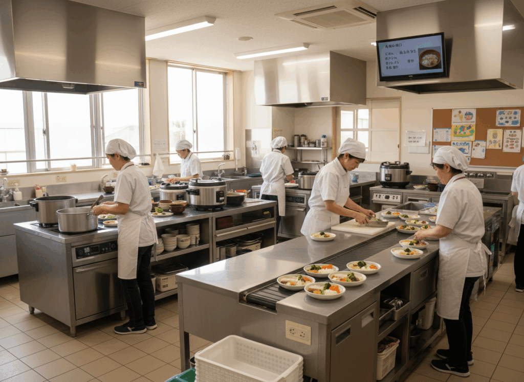 園内調理のあたたかい給食、みんなの笑顔の時間。